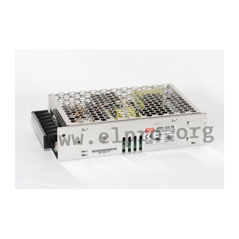 Switching power supplies in an enclosed housing with 150W, screw terminals, a universal input and a low profile. These devices have a built-in active PFC function and are protected against overload (auto recovery), overvoltage (300V AC / 5s) as well as short circuit. They have a built-in remote sense function and comply with UL/EN62368-1, EN55032 class B, EN61000-3-2 as well as EN61000-3-3. We offer the following types of this Mean Well series: HRP-150-3.3, HRP-150-5, HRP-150-7.5, HRP-150-12, HRP-150-15, HRP-150-24, HRP-150-36 and HRP-150-48.