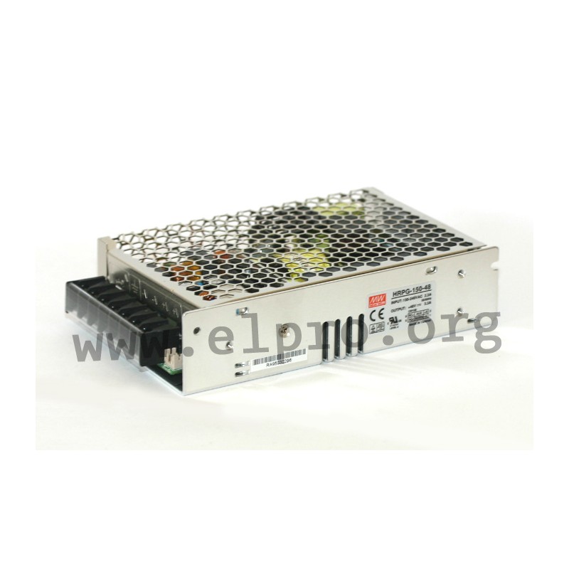 Switching power supplies in an enclosed housing with 150W, screw terminals, a universal input and a low profile. These devices have a built-in active PFC function and are protected against overload (auto recovery), overvoltage (300V AC / 5s) as well as short circuit. They have a built-in remote sense function and comply with UL/EN62368-1, EN55032 class B, EN61000-3-2 as well as EN61000-3-3. We offer the following types of this Mean Well series: HRP-150-3.3, HRP-150-5, HRP-150-7.5, HRP-150-12, HRP-150-15, HRP-150-24, HRP-150-36 and HRP-150-48.