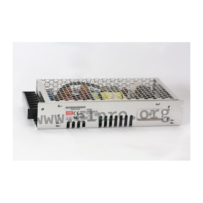 Switching power supplies in an enclosed housing with 200W, a universal input, a low profile and screw terminals. These devices have a built-in active PFC function and are protected against overload (auto recovery), overvoltage (300V AC / 5s) as well as short circuit. They have a built-in remote sense control and comply with UL/EN62368-1, EN55032 class B, EN61000-3-2 as well as EN61000-3-3. We offer the types HRP-200-3.3, HRP-200-5, HRP-200-7.5, HRP-200-12, HRP-200-15, HRP-200-24, HRP-200-36 and HRP-200-48 of this Mean Well series as well as the following power supplies with a low no-load power, a built-in remote ON/OFF control and a built-in auxiliary power (standby 5V/0,3A): HRPG-200-3.3, HRPG-200-5, HRPG-200-7.5, HRPG-200-12, HRPG-200-15, HRPG-200-24, HRPG-200-36 and HRPG-200-48.