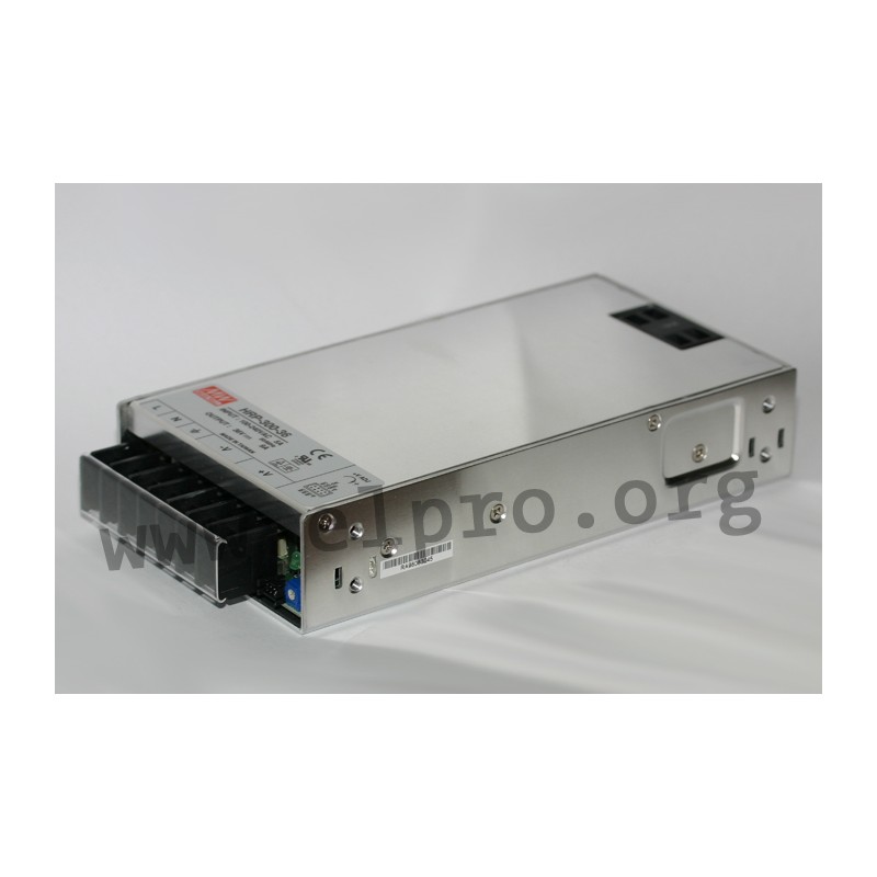 Switching power supplies in an enclosed housing with 300W, a universal input, screw terminals, a DC OK signal and a low profile. These devices have a built-in active PFC function and are protected against overload (auto recovery), overvoltage (300V AC / 5s) as well as short circuit. They have a built-in remote sense function and comply with UL/EN62368-1, EN55032 class B, EN61000-3-2 as well as EN61000-3-3. We offer the types HRP-300-3.3, HRP-300-5, HRP-300-7.5, HRP-300-12, HRP-300-15, HRP-300-24, HRP-300-36 and HRP-300-48 of this Mean Well series as well as the power supplies HRPG-300-3.3, HRPG-300-5, HRPG-300-7.5, HRPG-300-12, HRPG-300-15, HRPG-300-24, HRPG-300-36 and HRPG-300-48 with a low no-load power (<0,5W), a built-in auxiliary power (standy 5V/0,3A) and a built-in remote ON/OFF control.