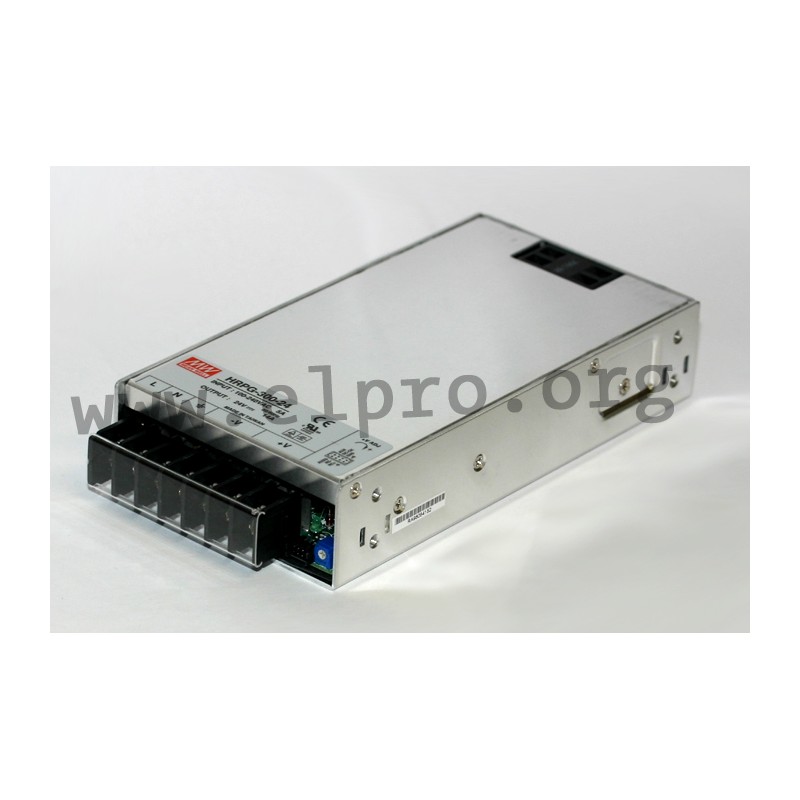 Switching power supplies in an enclosed housing with 300W, a universal input, screw terminals, a DC OK signal and a low profile. These devices have a built-in active PFC function and are protected against overload (auto recovery), overvoltage (300V AC / 5s) as well as short circuit. They have a built-in remote sense function and comply with UL/EN62368-1, EN55032 class B, EN61000-3-2 as well as EN61000-3-3. We offer the types HRP-300-3.3, HRP-300-5, HRP-300-7.5, HRP-300-12, HRP-300-15, HRP-300-24, HRP-300-36 and HRP-300-48 of this Mean Well series as well as the power supplies HRPG-300-3.3, HRPG-300-5, HRPG-300-7.5, HRPG-300-12, HRPG-300-15, HRPG-300-24, HRPG-300-36 and HRPG-300-48 with a low no-load power (<0,5W), a built-in auxiliary power (standy 5V/0,3A) and a built-in remote ON/OFF control.
