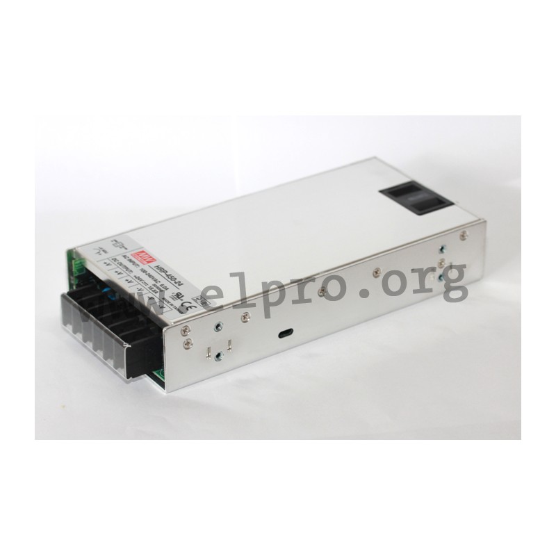 Furthermore, our product range includes the following power supplies with a low no-load power, a built-in auxiliary power (standby, 5V/0,3A) as well as a built-in remote ON/OFF control: HRPG-450-3.3, HRPG-450-5, HRPG-450-7.5, HRPG-450-12, HRPG-450-15, HRPG-450-24, HRPG-450-36 and HRPG-450-48.