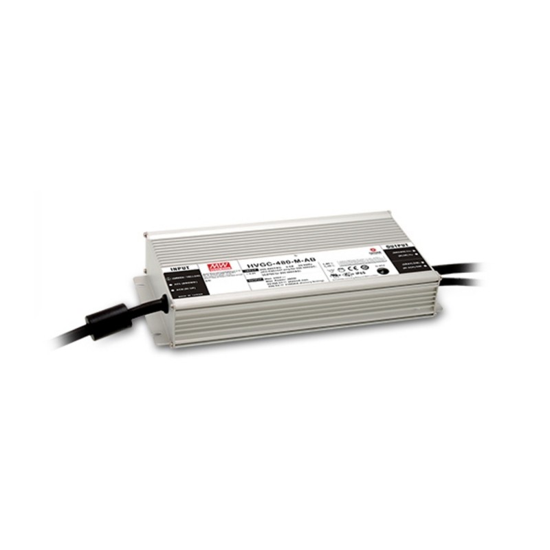 LED drivers in a metal housing (IP65) with 480W, a constant power and a DALI interface (HVGC-480_-ADA). These devices have a built-in active PFC function and are protected against overload (auto recovery), overvoltage, short circuit as well as overtemperature. They are suitable for LED lighting applications and comply with EN61347-1, EN55015 as well as EN61000-3-2 class C. We offer the following types of this Mean Well series: HVGC-480-L, HVGC-480-H, HVGC-480-M, HVGC-480-L-ADA, HVGC-480-M-ADA and HVGC-480-H-ADA.