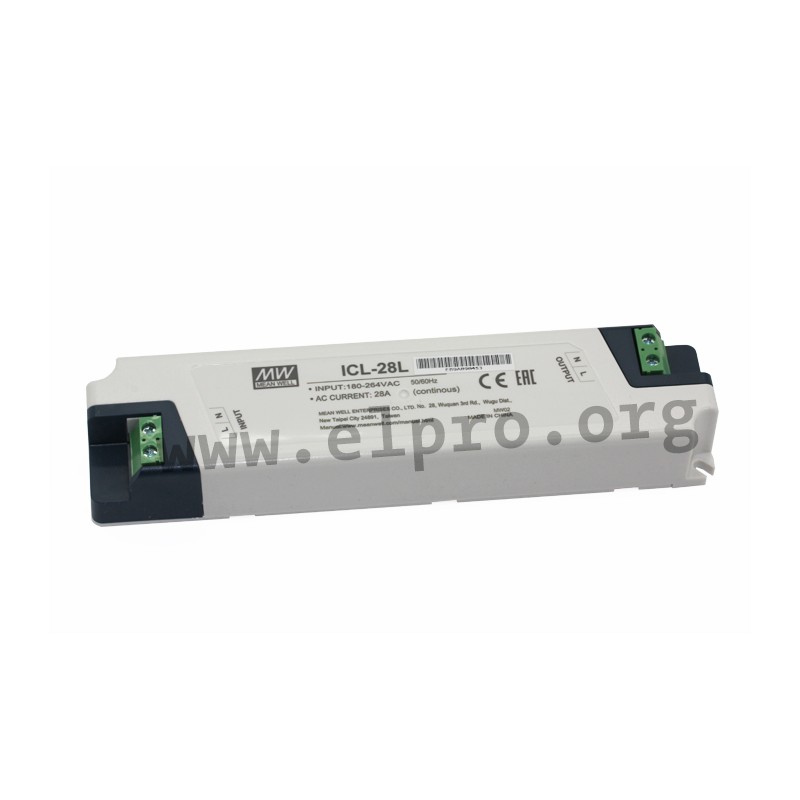 Peak- resp. R.M.S. current limiters for capacitive (up to 6000µF) loads. These devices have an internal thermal protection as well as an integrated bypass relay and are suitable for DIN Rail mounting (ICL-28R) or installation in terminal devices (ICL-28L). They allow the installation of several power supplies on the same AC line and comply with EN55032 class B as well as EN61000-3-2. We offer the following types of this Mean Well series: ICL-28R and ICL-28L.