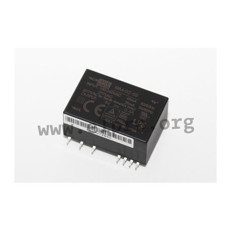 Switching power supplies in an enclosed housing (PCB) with 2W, a universal input, insulation class II and a low no-load power. These devices have a fanless design and are protected against overload, overtemperature as well as short circuit. They are suitable for direct PCB mounting (SMD) and comply with UL/EN62368-1, EN55032 class B, EN61000-3-2 as well as EN61000-3-3. We offer the following types of this Mean Well series: IRM-02-3.3S, IRM-02-5S, IRM-02-9S, IRM-02-12S, IRM-02-15S and IRM-02-24S.