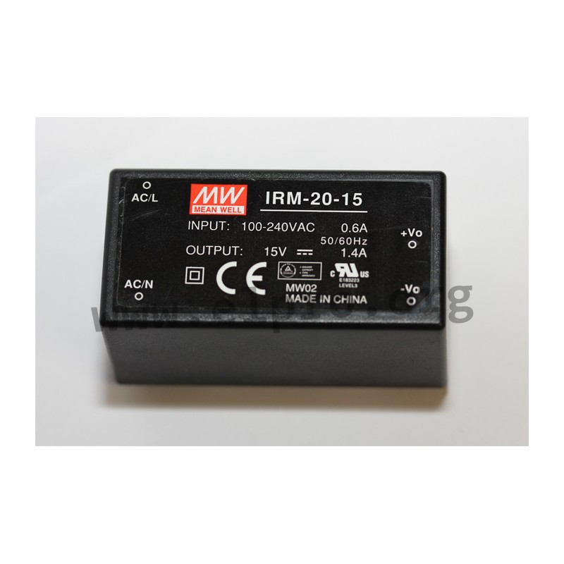 Switching power supplies in an enclosed housing (PCB) with 20W, insulation class II, a low no-load power and a universal input. These devices have a fanless design and are protected against overload, overvoltage as well as short circuit. They are suitable for PCB mounting and comply with UL/EN62368-1 as well as EN55032 class B. We offer the following types of this Mean Well series: IRM-20-3.3, IRM-20-5, IRM-20-12, IRM-20-15 and IRM-20-24.