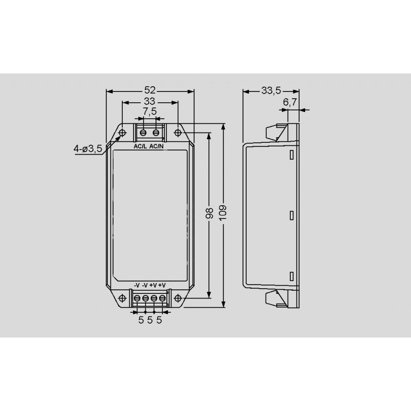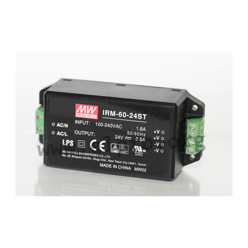 Switching power supplies in an enclosed housing with 60W, insulation class II, a universal input and a low no-load power. These devices are suitable for PCB mounting (IRM-60_) as well as for mounting by screw terminals (IRM-60-_ST) and are protected against overload, overvoltage as well as short circuit. They have a fanless design and comply with UL/EN62368-1 as well as EN55032 class B. We offer the following types of this Mean Well series: IRM-60-5, IRM-60-12, IRM-60-15, IRM-60-24, IRM-60-48, IRM-60-5ST, IRM-60-12ST, IRM-60-15ST, IRM-60-24ST and IRM-60-48ST.