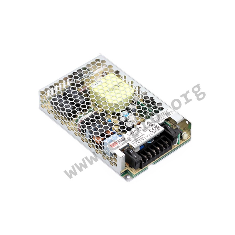 Switching power supplies in an enclosed housing with 120W, a built-in battery charger (UPS function), two output channels and a universal input. These devices are suitable for lead-acid as well as Li-ion batteries and are protected against overload, overvoltage, voltage reversal, overtemperature as well as short circuit. They have an adjustable output voltage for CH1 (-20%,~+5%) and comply with EN62368-1 as well as EN55032 class A. We offer the following types of this Mean Well series: LAD-120A, LAD-120B, LAD-120C and LAD-120D.