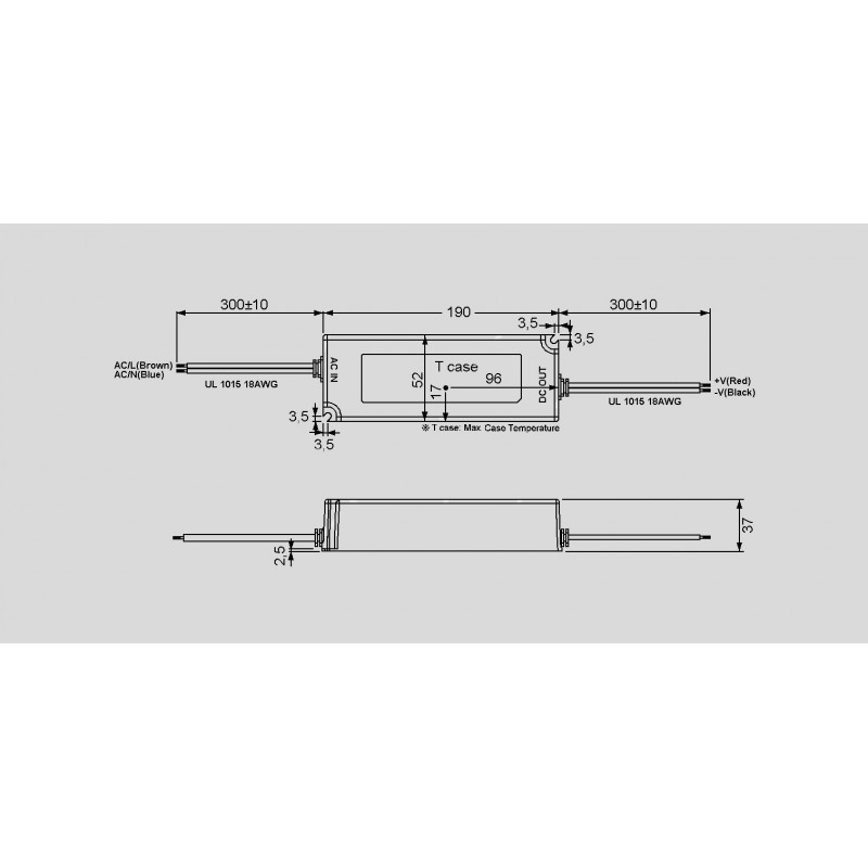 LED drivers in a plastic housing (IP67) with a universal input, 100W, protection class II and a constant current. These devices are protected against overload (auto recovery), short circuit as well as overvoltage and comply with EN62368-1, IEC62368-1 as well as EN55032 class B. They are suitable for LED lighting applications and are not dimmable. We offer the following types of this Mean Well series: LPC-100-350, LPC-100-500, LPC-100-700, LPC-100-1050, LPC-100-1400, LPC-100-1750 and LPC-100-2100.