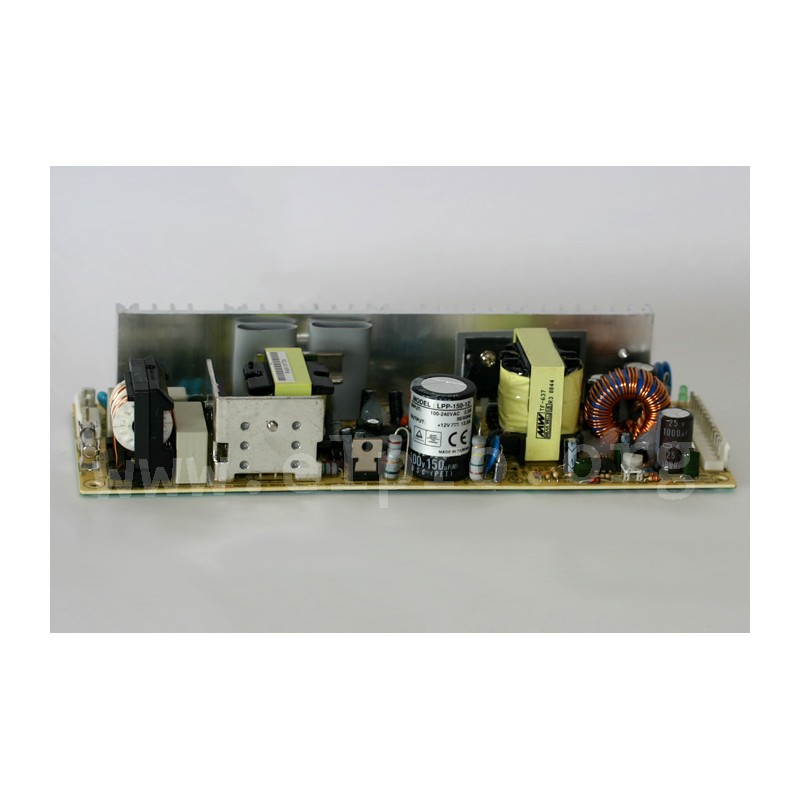 Open frame type switching power supplies with 150W, a universal input and a pin strip connection for nylon crimp terminals. These devices have a built-in active PFC function and are protected against overload (auto recovery), overvoltage as well as short circuit. They have a fixed switching frequency and comply with UL/EN62368-1, EN55032 class B, EN61000-3-2 as well as EN61000-3-3. We offer the following types of this Mean Well series: LPP-150-3.3, LPP-150-5, LPP-150-7.5, LPP-150-12, LPP-150-13.5, LPP-150-24, LPP-150-27 and LPP-150-48.
