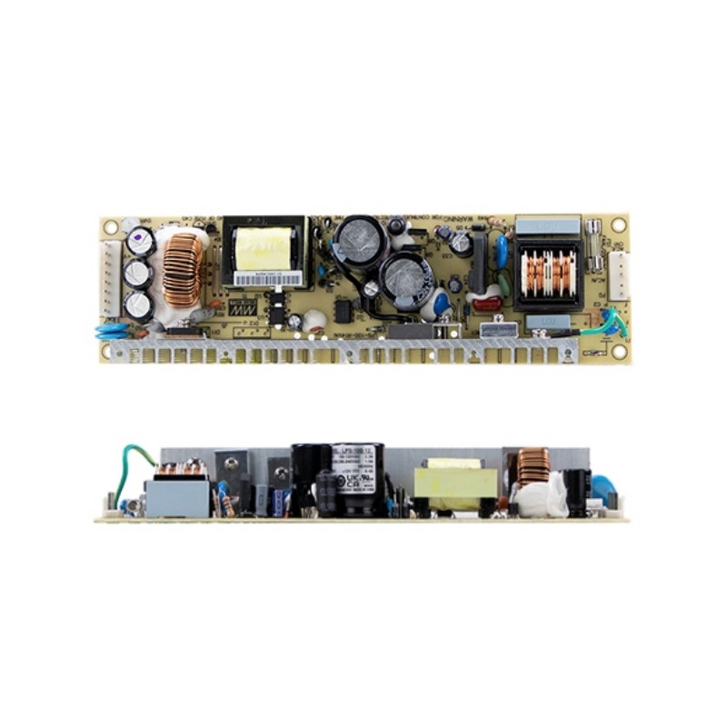 Open frame switching power supplies with 100W, a universal input and contact pins. These devices have a built-in active PFC function and a fixed switching frequency at 134kHz. They are protected against overload (auto recovery), overvoltage as well as short circuit and comply with EN60950-1 as well as EN55032 class B. We offer the following types of this Mean Well series: LPS-100-3.3, LPS-100-5, LPS-100-7.5, LPS-100-12, LPS-100-13.5, LPS-100-15, LPS-100-24, LPS-100-27 and LPS-100-48.