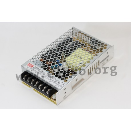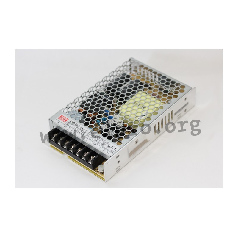 Switching power supplies in an enclosed housing with 150W, screw terminals, a universal input (LRS-150F-_), a switch for selecting the AC input voltage range (LRS-150-_) and a low profile. These devices are suitable for an operating altitude of up to 5000m and are protected against overload (auto recovery), overvoltage as well as short circuit. They have a low no-load power and comply with EN62368-1 as well as EN55032 class B. We offer the following types of this Mean Well series: LRS-150-12, LRS-150-15, LRS-150-24, LRS-150-36, LRS-150-48, LRS-150F-5, LRS-150F-12, LRS-150F-15, LRS-150F-24, LRS-150F-36 and LRS-150F-48.