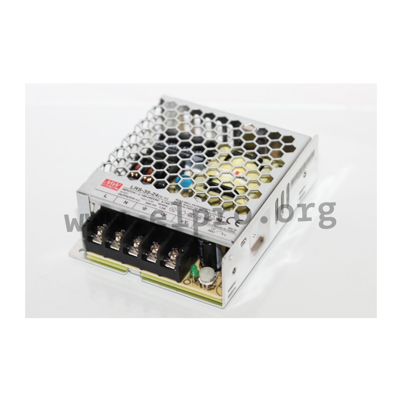 Switching power supplies in an enclosed housing with 35W, screw terminals, a low profile and a universal input. These devices have a high efficiency and are protected against overload (auto recovery), overvoltage as well as short circuit. They are suitable for an operating altitude of up to 5000m and comply with EN62368-2 as well as EN55032 class B. We offer the following types of this Mean Well series: LRS-35-5, LRS-35-12, LRS-35-15, LRS-35-24, LRS-35-36 and LRS-35-48.