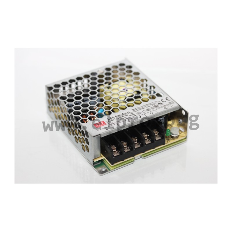 Switching power supplies in an enclosed housing with 50W, a low profile, a universal input and screw terminals. These devices have a high efficiency and are protected against overload (auto recovery), overvoltage as well as short circuit. They are suitable for an operating altitude of up to 5000m and comply with EN55032 class B as well as EN62368-1. We offer the following types of this Mean Well series: LRS-50-5, LRS-50-12, LRS-50-15, LRS-50-24, LRS-50-36 and LRS-50-48.