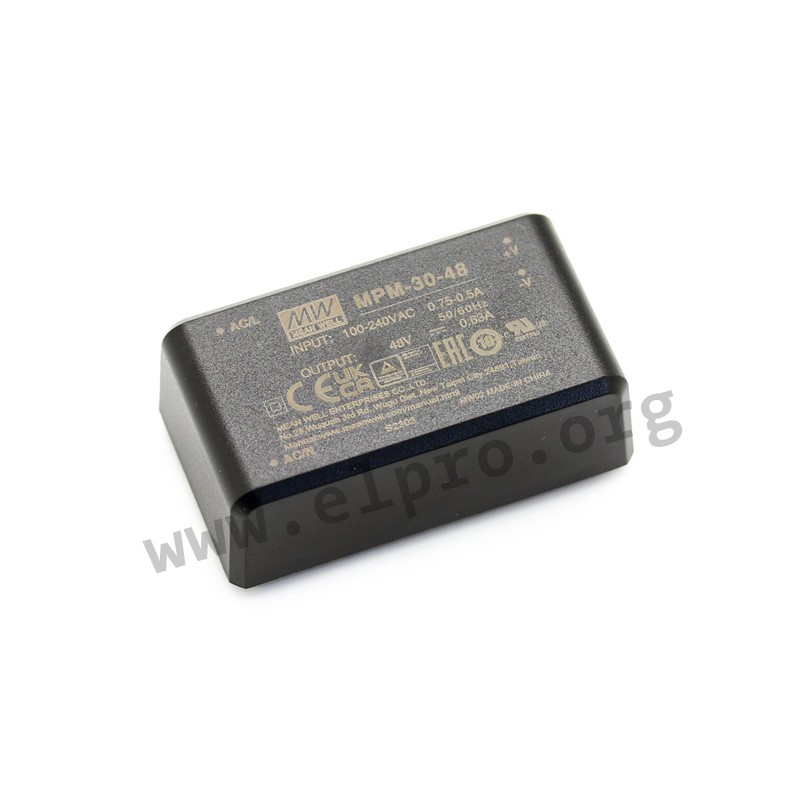 Switching power supplies in an enclosed housing (PCB) with 30W, screw terminals (MPM-30-_ST), insulation class II, a low no-load power and a universal input. These devices are suitable for medical applications and are protected against overload (auto recovery), overtemperature, short circuit as well as overvoltage. They are suitable for PCB mounting and comply with EN60601-1. We offer the following types of this Mean Well series: MPM-30-3.3, MPM-30-5, MPM-30-12, MPM-30-15, MPM-30-24, MPM-30-48, MPM-30-3.3ST, MPM-30-5ST, MPM-30-12ST, MPM-30-15ST, MPM-30-24ST and MPM-30-48ST.