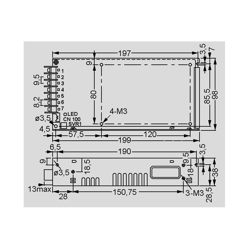 Switching power supplies in an enclosed housing (1U) with 200W, a universal input, screw terminals a DC OK signal, a built-in auxiliary power (standby 5V/0,3A), a built-in remote ON/OFF control, a low no-load power (<0,5W) and a built-in remote sense function. These devices have a built-in active PFC function and are protected against overload (auto recovery), overvoltage as well as short circuit. They are suitable for medical applications and comply with EN60601-1. We offer the following types of this Mean Well series: MSP-200-3.3, MSP-200-12, MSP-200-24, MSP-200-36 and MSP-200-48.