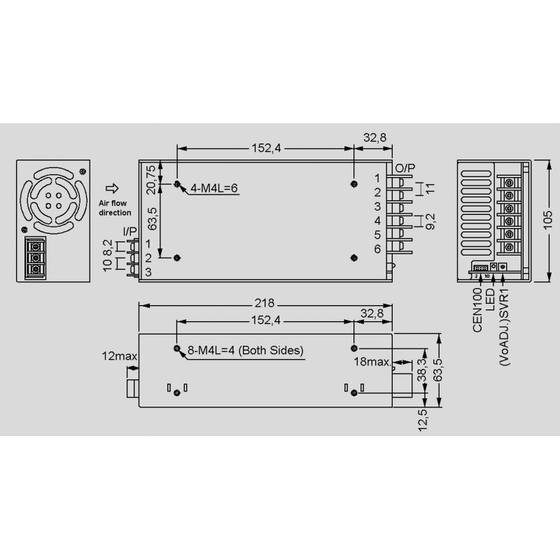 Switching power supplies in an enclosed housing with 600W, screw terminals, a fan, a parallel function (3+1), a built-in auxiliary power (standby 5V/0,3A), a built-in remote sense function, a DC OK signal, a built-in remote ON/OFF control and a universal input. These devices have a built-in active PFC function and are protected against overload (auto recovery), overvoltage as well as short circuit. They are suitable for medical applications (MOOP level) and comply with EN60601-1, EN55011 class B, EN61000-3-2 as well as EN61000-3-3. We offer the following types of this Mean Well series: MSP-600-3.3, MSP-600-5, MSP-600-7.5, MSP-600-12, MSP-600-15, MSP-600-24, MSP-600-36 and MSP-600-48.