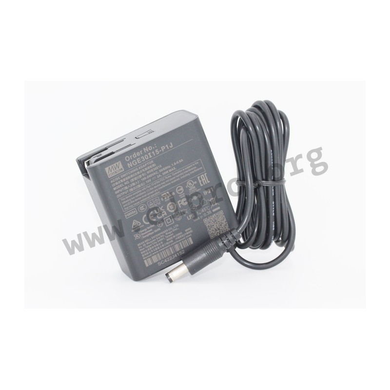 Plug-in switching power supplies in a plastic housing (IP21) with 30W, protection class II, an extremely low leakage current (<100µA), energy effieciency Level VI and a universal input. These devices are suitable for medical technology applications (2xMOPP) and are protected against overload, short circuit as well as overvoltage. They have interchangeable AC plugs (NGE30I_) resp. a Europlug (NGE30E_) and comply with EN60601-1, EN60335-1, EN61558-1, EN61558-2-16 as well as EN55032 class B. We offer the following types of this Mean Well series: NGE30E05-P1J, NGE30E09-P1J, NGE30E12-P1J, NGE30E18-P1J, NGE30E24-P1J, NGE30E48-P1J, NGE30I05-P1J, NGE30I09-P1J, NGE30I12-P1J, NGE30I15-P1J, NGE30I18-P1J, NGE30I24-P1J and NGE30I48-P1J.