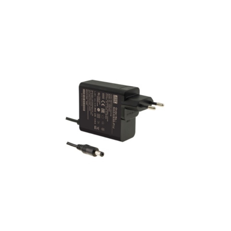 Plug-in switching power supplies in a plastic housing (IP21) with 45W, a low no-load power (<0,075W), energy efficiency Level VI, protection class II and a universal input. These devices are suitable for medical technology applications (2xMOPP) and are protected against overvoltage, overload as well as short circuit. They have a Europlug (NGE45E_) resp. separately available interchangeable AC plugs (NGE45I_) and comply with EN62368-1, EN60601-1, EN60335-1, EN61558-1, EN61558-2-16 as well as EN55032 class B. We offer the following types of this Mean Well series: NGE45E05-P1J, NGE45E09-P1J, NGE45E12-P1J, NGE45E15-P1J, NGE45E18-P1J, NGE45E24-P1J, NGE45E48-P1J, NGE45I05-P1J, NGE45I09-P1J, NGE45I12-P1J, NGE45I15-P1J, NGE45I18-P1J, NGE45I24-P1J and NGE45I48-P1J.