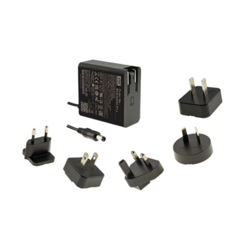 Plug-in switching power supplies in a plastic housing (IP21) with 45W, a low no-load power (<0,075W), energy efficiency Level VI, protection class II and a universal input. These devices are suitable for medical technology applications (2xMOPP) and are protected against overvoltage, overload as well as short circuit. They have a Europlug (NGE45E_) resp. separately available interchangeable AC plugs (NGE45I_) and comply with EN62368-1, EN60601-1, EN60335-1, EN61558-1, EN61558-2-16 as well as EN55032 class B. We offer the following types of this Mean Well series: NGE45E05-P1J, NGE45E09-P1J, NGE45E12-P1J, NGE45E15-P1J, NGE45E18-P1J, NGE45E24-P1J, NGE45E48-P1J, NGE45I05-P1J, NGE45I09-P1J, NGE45I12-P1J, NGE45I15-P1J, NGE45I18-P1J, NGE45I24-P1J and NGE45I48-P1J.