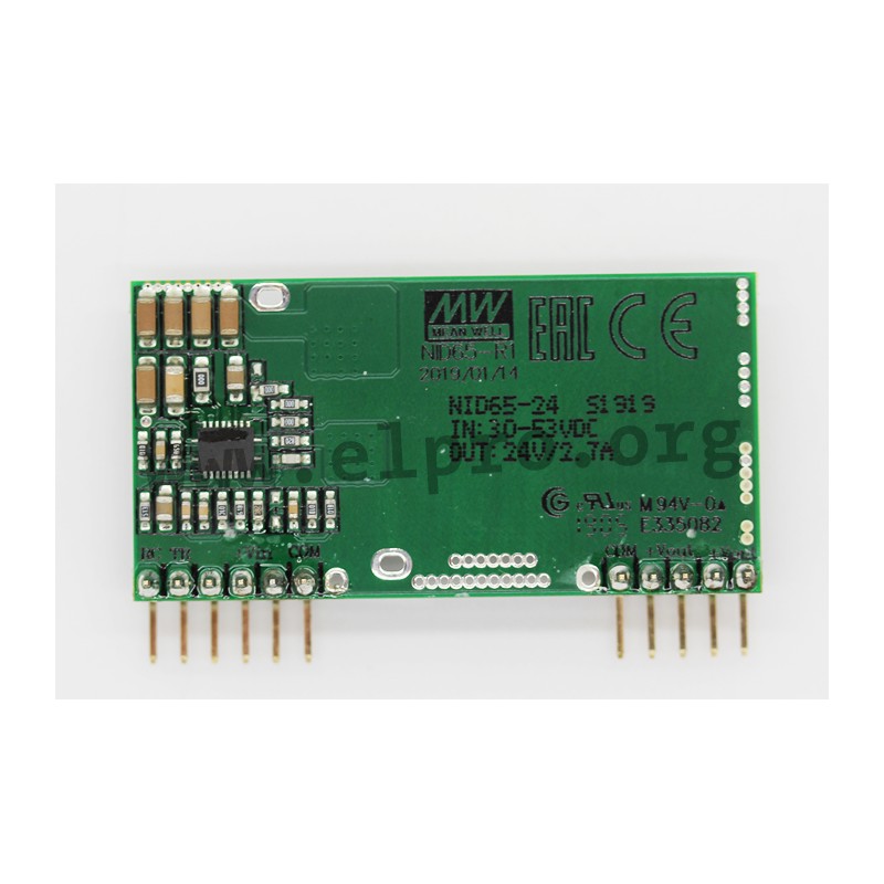 Non-isolated DC/DC converters in an open frame SIL housing with 65W, a remote ON/OFF control and a regulated output voltage. These devices are suitable for PCB mounting and are protected against overload, overvoltage as well as short circuit. They have a fanless design and comply with EN62368-1, EN55032 class A as well as EN55032 class B. We offer the following types of this Mean Well series: NID65-5, NID65-12, NID65-15 and NID65-24.