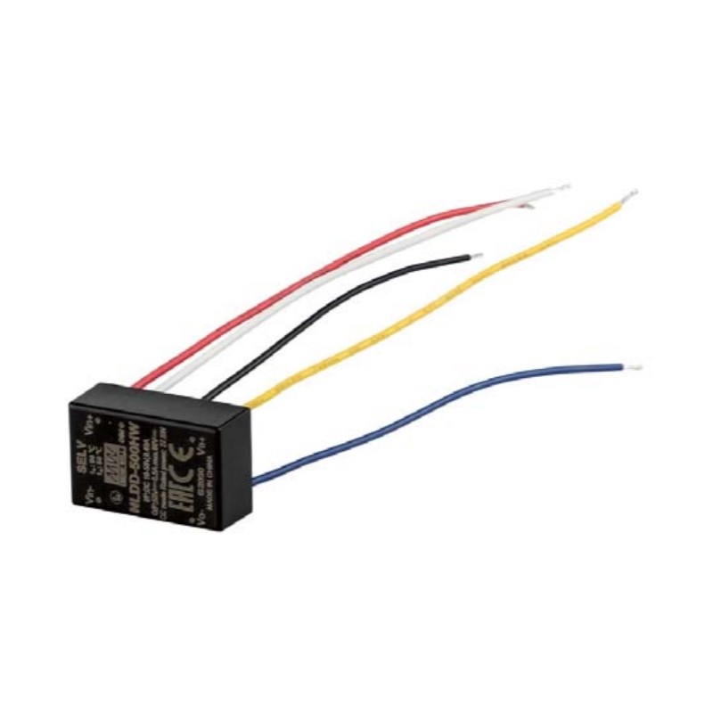 DC/DC Step-Down LED drivers in a plastic housing (UL94V-0) with a constant current output, a wide input voltage range and a remote ON/OFF control. These devices are suitable for LED lightning applications and are protected against overtemperature as well as short circuit. They have a dimming function (PWM) and comply with IEC61547 as well as EN55015. Our product range comprises converters for direct PCB mounting (NLDD-_H) as well as models with stranded wires (NLDD-_HW). We offer the following types of this Mean Well series: NLDD-350H, NLDD-500H, NLDD-700H, NLDD-1050H, NLDD-1200H, NLDD-1400H, NLDD-350HW, NLDD-500HW, NLDD-700HW, NLDD-1050HW, NLDD-1200HW and NLDD-1400HW.