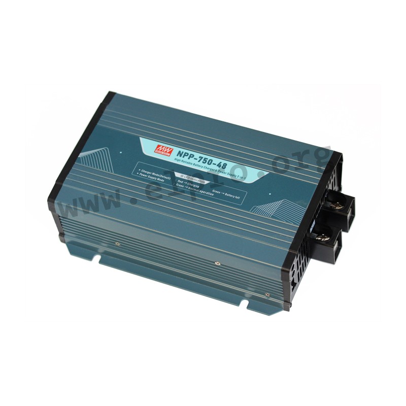 External battery chargers with 750W, a 3-stage charging curve, a remote ON/OFF control and a built-in fan. These devices can be used as power supplies as well as battery chargers, are suitable for lead-acid batteries and are protected against overload, overvoltage, overtemperature as well as short circuit. They have a potentiometer for adjusting the output voltage as well as the output current and comply with EN62368-1, EN60335-1/2-29, EN55032 class B as well as EN5501-1 class B. We offer the following types of this Mean Well series: NPP-750-12, NPP-750-24 and NPP-750-48.