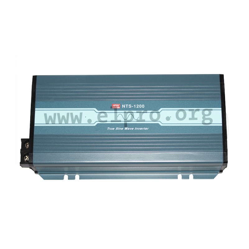Inverters with 1200W, a pure sine wave output (THD<3%), a low battery voltage alarm function and a remote ON/OFF control. These devices have an automatic shutdown function in case of a deeply discharged battery and are protected against overvoltage, short circuit as well as overtemperature. They have an adjustable output voltage and comply with IEC62368-1, EN62368-1 as well as EN55032 class A. We offer the following types of this Mean Well series: NTS-1200-212EU, NTS-1200-224EU and NTS-1200-248EU.