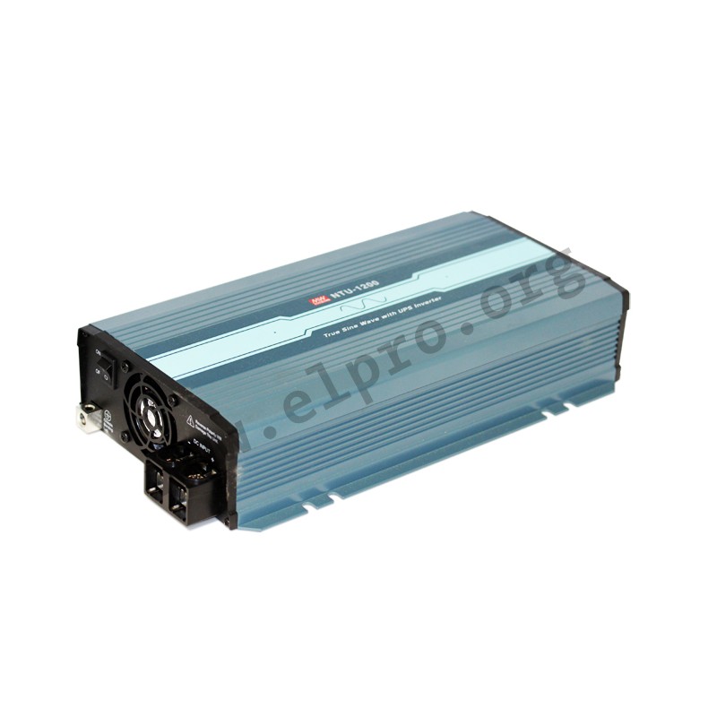 Inverters with 1200W, a pure sine wave output (THD<3%), a built-in UPS function, an automatic shutdown in case of a deeply discharged battery and a remote ON/OFF function. These devices have an adjustable output voltage and are protected against overvoltage, short circuit as well as overtemperature. They trigger an alarm in case of a low battery voltage and comply with IEC62368-1, EN62368-1 as well as EN55032 class A. We offer the following types of this Mean Well series: NTU-1200-212EU, NTU-1200-224EU and NTU-1200-248EU.