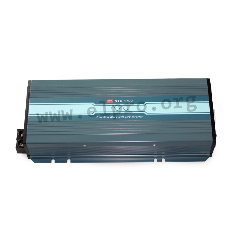 Inverters in an enclosed housing with 1700W, a built-in UPS function, a pure sine wave output (THD < 3%) and a remote ON/OFF control. These devices have a selectable output voltage and are protected against overload, overtemperature, short circuit as well as overvoltage. They are suitable for lead-acid as well as Li-ion batteries and comply with EN62368-1, IEC62368-1 as well as EN55032 class A. We offer the following types of this Mean Well series: NTU-1700-212EU, NTU-1700-224EU and NTU-1700-248EU.