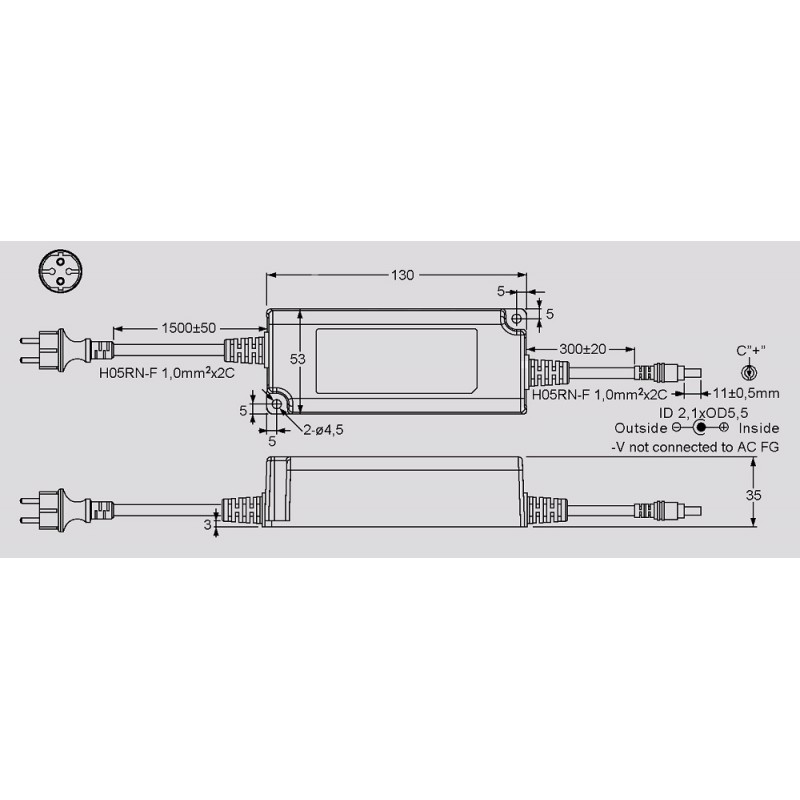 Desktop switching power supplies in a plastic housing (IP67) with 60W, insulation class II, a low no-load power, energy efficiency Level VI and a universal input. These devices have a fanless design and are protected against overtemperature, short circuit, overvoltage as well as overload. They are very efficient and comply with EN61558-1, EN61558-2-16, EN55032 class B, EN55014-1 as well as EN61000-3-2 class A. We offer the following types of this Mean Well series: OWA-60E-12, OWA-60E-15, OWA-60E-20, OWA-60E-24, OWA-60E-30, OWA-60E-36, OWA-60E-42, OWA-60E-48 and OWA-60E-54.