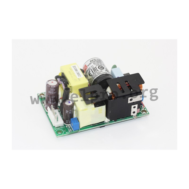 Switching power supplies in an open frame 3"x2" housing with 120W, a low no-load power (<0,3W) and a pin strip connection for nylon crimp terminals. These devices are suitable for medical technology applications (2xMOPP) and are protected against overload (auto recovery), overtemperature, short circuit as well as overvoltage. They are suitable for an operating altitude of up to 4000m and comply with EN60601-1, EN61000-3-2 as well as EN61000-3-3. We offer the following types of this Mean Well series: RPS-120S-12, RPS-120S-15, RPS-120S-24, RPS-120S-27 and RPS-120S-48.