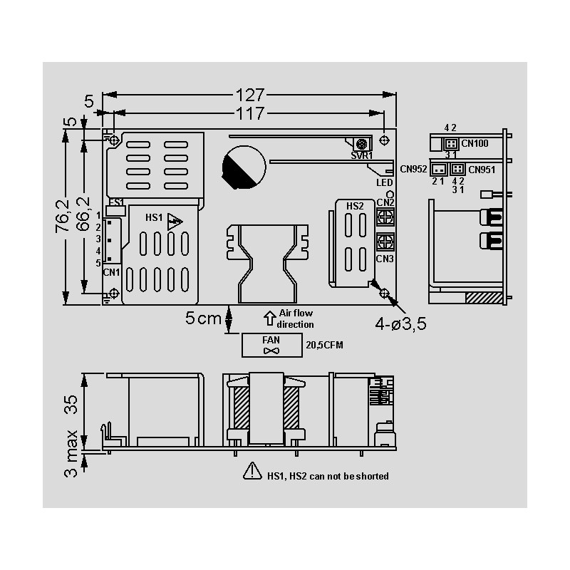 Switching power supplies in a 5"x3" housing (open frame) with 200W resp. 300W with forced air (20,5cfm), a built-in auxiliary output (12V/0,5A), a universal input, a low no-load power and a universal input. These devices are suitable for medical technology applications (2xMOPP) and are protected against overload (auto recovery), overtemperature, overvoltage as well as short circuit. They have a service life of more than 40.000 hours and comply with EN60601-1, EN60335-1, EN55011 class B, EN61000-3-2 as well as EN61000-3-3. We offer the following types of this Mean Well series: RPS-300-12, RPS-300-15, RPS-300-24, RPS-300-27 and RPS-300-48.