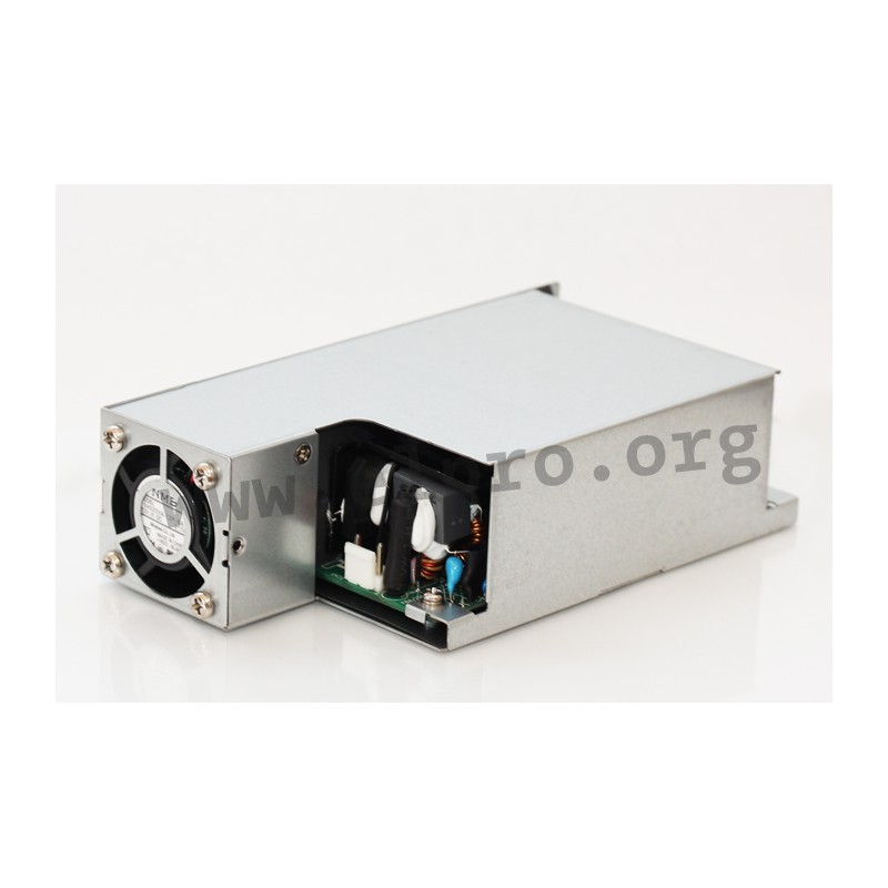 Switching power supplies in a 5"x3" housing with 250W (400W with 25cfm forced air), a universal input, a low no-load power (<0,5W) and a pin strip connection for nylon crimp terminals. These devices are suitable for medical technology applications (2xMOPP) and are protected against overload (auto recovery), overvoltage, overtemperature as well as short circuit. They are suitable for an operating altitude of up to 4000m and comply with EN60601-1, EN60335-1, EN55011 class B, EN61000-3-2 as well as EN61000-3-3. We offer the types RPS-400-12-SF, RPS-400-15-SF, RPS-400-18-SF, RPS-400-24-SF, RPS-400-27-SF, RPS-400-36-SF and RPS-400-48-SF with a fan on the side as well as the power supplies RPS-400-12-TF, RPS-400-15-TF, RPS-400-18-TF, RPS-400-24-TF, RPS-400-27-TF, RPS-400-36-TF and RPS-400-48-TF with a fan on the top.