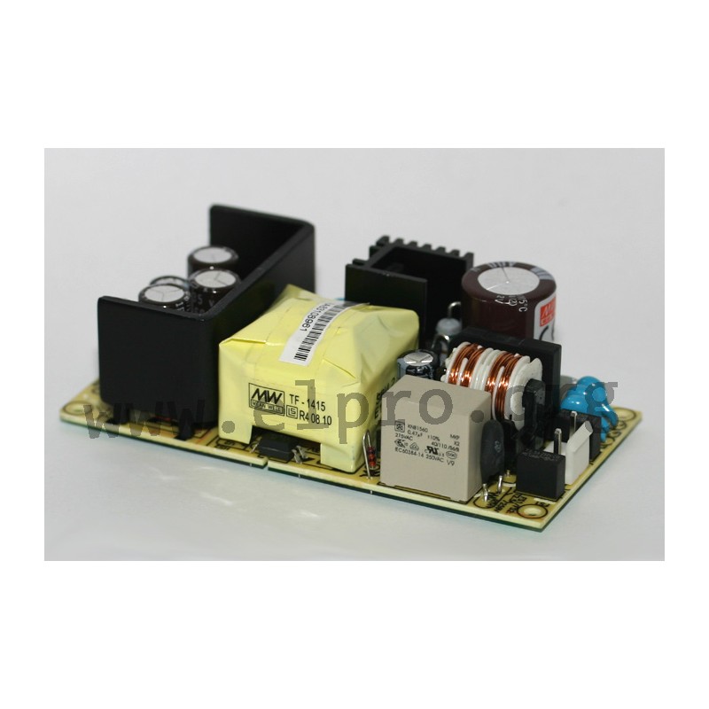 Open frame type switching power supplies with 60W, a universal input and a low no-load power. These devices are suitable for medical technology applications (2xMOPP) and are protected against overload (auto recovery), overvoltage as well as short circuit. They have a pin strip connection for nylon crimp terminals and comply with EN60601-1, UL/EN62368-1, EN61000-3-2 as well as EN61000-3-3. We offer the following types of this Mean Well series: RPS-60-3,3, RPS-60-5, RPS-60-12, RPS-60-15, RPS-60-24 and RPS-60-48.