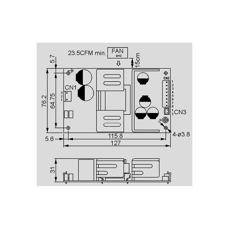 Switching power supplies in a 5"x3" housing (open frame) with 75W, a universal input and a low no-load power. These devices are suitable for medical technology applications (2xMOPP) and are protected against overload (auto recovery), overvoltage as well as short circuit. They have a pin strip connection for nylon crimp terminals and comply with EN60601-1, EN60335-1, EN61000-3-2 as well as EN61000-3-3. We offer the following types of this Mean Well series: RPS-75-3.3, RPS-75-5, RPS-75-12, RPS-75-15, RPS-75-24, RPS-75-36 and RPS-75-48.