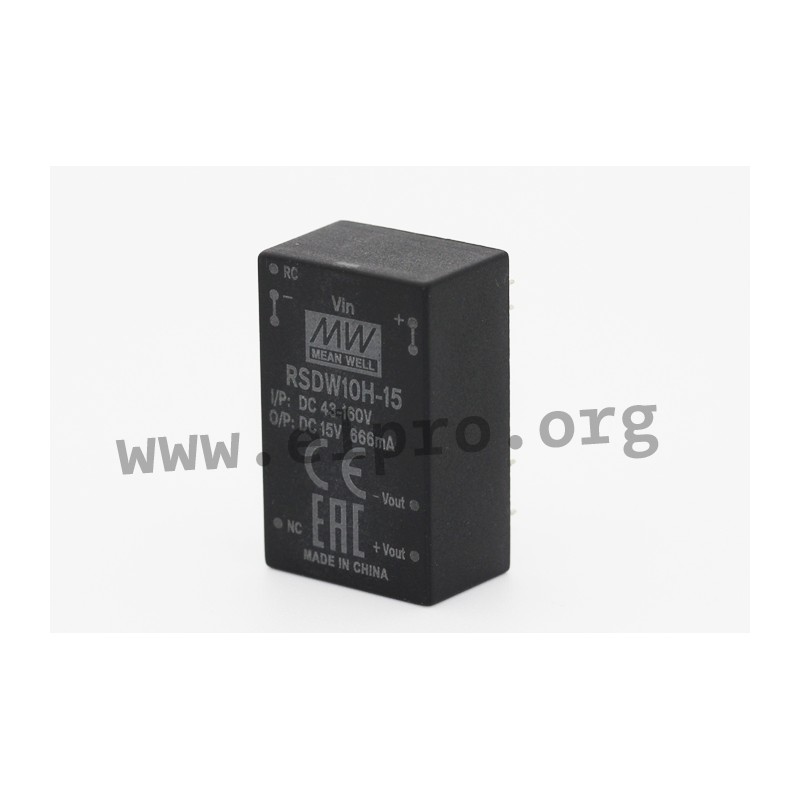 DC/DC converters in a DIL24 housing with 10W, a remote ON/OFF control and an input voltage ratio of 4:1. These devices require no minimum load, are suitable for rail industry applications and are protected against overload, overvoltage, input undervoltage as well as short circuit (continuous). They are suitable for PCB mounting and comply with EN55032 class A as well as EN50155. We offer the following types of this Mean Well series: RSDW10H-03, RSDW10H-05, RSDW10H-12, RSDW10H-15, RDDW10H-05, RDDW10H-12 and RDDW10H-15.