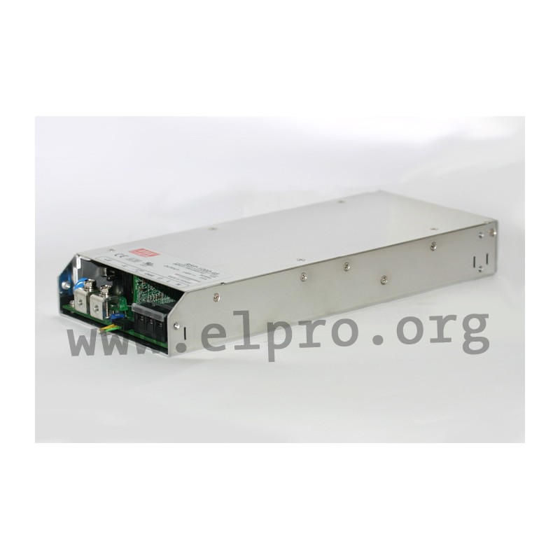 Switching power supplies in an enclosed housing with 1000W, a universal input, screw terminals, a fan, a low profile (1U/19"), a parallel function, a built-in auxiliary power (5V/0,5A), a DC OK signal, a built-in remote sense function and a built-in remote ON/OFF control. These devices have a built-in active PFC function and are protected against overload (auto recovery), overvoltage as well as short circuit. They are suitable for an active current sharing of up to 4000W (3+1 units) and comply with EN55032/EN55011 class B as well as EN55032/EN55011 class A. We offer the following types of this Mean Well series: RSP-1000-12, RSP-1000-15, RSP-1000-24, RSP-1000-27 and RSP-1000-48.