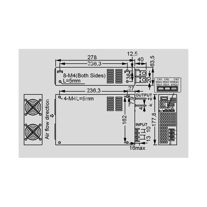 Switching power supplies in an enclosed housing with 2400W, a parallel function, a built-in remote ON/OFF control, a power fail signal, a built-in remote sense function, screw terminals, a fan, a built-in auxiliary power (12V/0,1A), a low no-load power and an active AC input current limiting. These devices have a built-in active PFC function and are protected against overload, overvoltage as well as short circuit. They are suitable for an active current sharing of up to 7200W (2+1 units) and comply with EN55032/EN55011 class B as well as EN55032/EN55011 class A. We offer the following types of this Mean Well series: RSP-2400-12, RSP-2400-24 and RSP-2400-48.