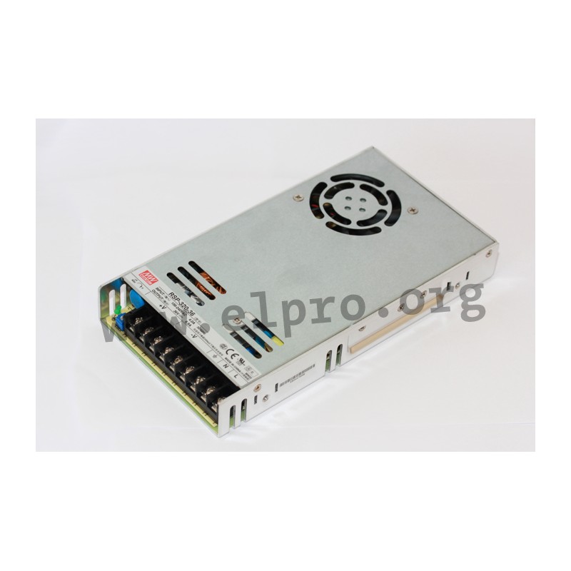 Switching power supplies in an enclosed housing (1U) with 320W, a built-in fan, a universal input and screw terminals. These devices have a built-in active PFC function and are protected against overload (auto recovery), short circuit as well as overvoltage. They have a low height and comply with EN62368-1 as well as EN55032 class B. We offer the following types of this Mean Well series: RSP-320-2.5, RSP-320-3.3, RSP-320-4, RSP-320-5, RSP-320-7.5, RSP-320-12, RSP-320-13.5, RSP-320-15, RSP-320-24, RSP-320-27, RSP-320-36 and RSP-320-48.