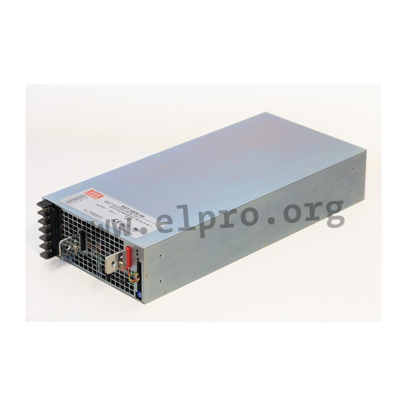 Switching power supplies in an enclosed housing with 5000W, a built-in remote ON/OFF control, a parallel function, a built-in auxiliary power, a fan, a built-in remote sense function, a 3 phase AC input and screw terminals. These devices have a built-in active PFC function and are protected against overload, fan fail, overtemperature, overvoltage as well as short circuit. They are suitable for an active current sharing of up to 20kW (3+1 units) and comply with EN55032/EN55011 class A as well as EN55032/EN55011 class A. The output voltage and the constant current level are programmable. We offer the following types of this Mean Well series: RST-5000-24, RST-5000-36 and RST-5000-48.