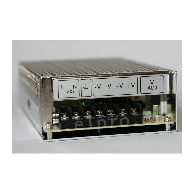Switching power supplies in an enclosed housing with 150W, a universal input and screw terminals. These devices have a switch for selecting the AC input range (115V/230V) and are protected against overload (auto recovery), overvoltage as well as short circuit. They have a fanless design and comply with UL1012 as well as UL/EN60950-1. We offer the following types of this Mean Well series: S-150-12, S-150-15 and S-150-48.