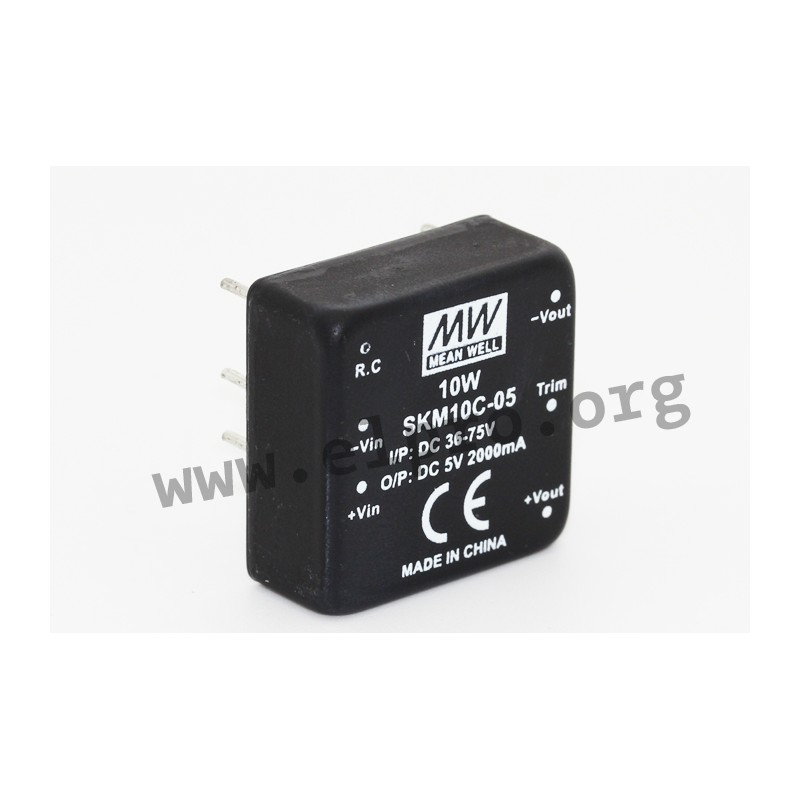 DC/DC converters in a 1"x1" DIL housing with 10W, a remote ON/OFF control, a trimming output (±10%) and an input voltage ratio of 2:1. These devices are suitable for PCB mounting and are protected against overload, input undervoltage, short circuit (continuous) as well as overvoltage. They require no minimum load and comply with EN55032 class A. We offer the following types of this Mean Well series: SKM10E-03, SKM10E-05, SKM10E-12, SKM10E-15, SKM10A-03, SKM10A-05, SKM10A-12, SKM10A-15, SKM10B-03, SKM10B-05, SKM10B-12, SKM10B-15, SKM10C-03, SKM10C-05, SKM10C-12 and SKM10C-15.