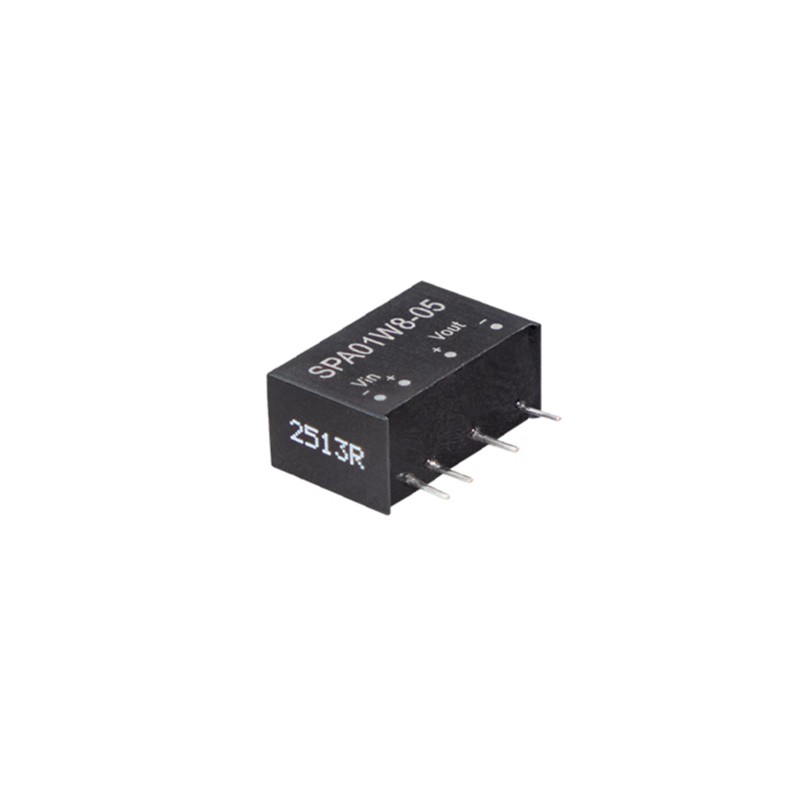 Regulated DC/DC converters in a SIP6 housing with 1W, as well as they are protected against overload and short circuit. These devices are available in a type with single output (SPA01W8-_) or with dual output (DPA01W8-_). We offer various types of this Mean Well series.