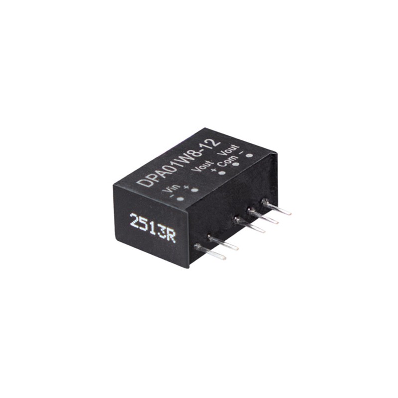 Regulated DC/DC converters in a SIP6 housing with 1W, as well as they are protected against overload and short circuit. These devices are available in a type with single output (SPA01W8-_) or with dual output (DPA01W8-_). We offer various types of this Mean Well series.