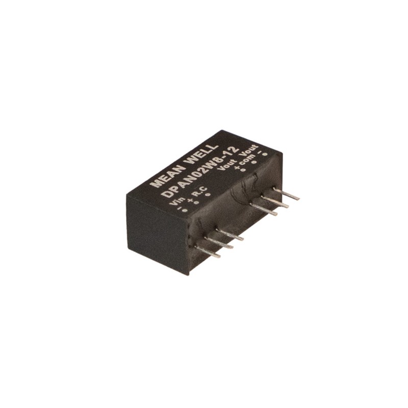 Regulated DC/DC converters in a SIP8 housing with 2W, as well as they are protected against overload and short circuit. These devices have a remote function and they are available in a type with single output (SPAN02W8-_) or with dual output (DPAN02W8-_). We offer the following types of this Mean Well series: SPAN02W8-03, SPAN02W8-05, SPAN02W8-12, SPAN02W8-15, DPAN02W8-05, DPAN02W8-12, and DPAN02W8-15.