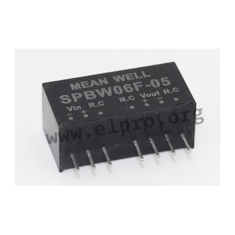 DC/DC converters in a SIL8 housing with 6W, a regulated output voltage, an input voltage ratio of 4:1 and a remote ON/OFF control. These devices are suitable for PCB mounting and are protected against overload as well as short circuit (continuous). They require no minimum minimum load and comply with EN55032. We offer the following types of this Mean Well series: SPBW06F-03, SPBW06F-05, SPBW06F-12, SPBW06F-15, SPBW06G-03, SPBW06G-05, SPBW06G-12 and SPBW06G-15.