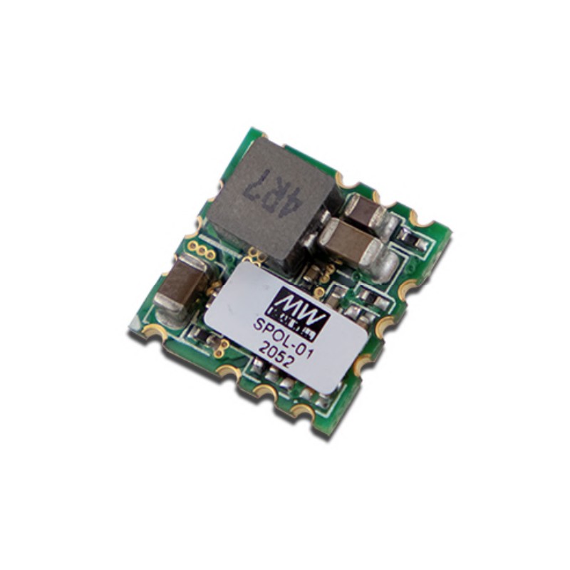 DC/DC switching regulators in an SMD housing (open frame) with 1A and a remote ON/OFF control. These devices are protected against short circuit and comply with EN62368-1 as well as EN55032 class A. They are suitable for direct PCB mounting (LGA footprint) and have an input voltage range of 3 to 14VDC. We offer the type SPOL-01 of this Mean Well series.