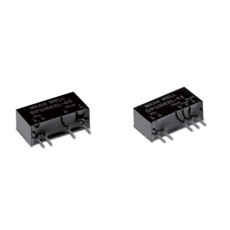 Isolated DC/DC converter modules with an unregulated output voltage in a SIL7 housing for direct PCB mounting. These devices are protected against both overload and short circuit (auto recovery) and have an input voltage ratio of 1:1. They also comply with the EN55032 standard. We offer the following versions of this Mean Well series: SPUN02L-05, SPUN02L-12, SPUN02L-15, DPUN02L-05, DPUN02L-12, DPUN02L-15, SPUN02M-05, SPUN02M-12, SPUN02M-15, DPUN02M-05, DPUN02M-12, DPUN02M-15, SPUN02N-05, SPUN02N-12, SPUN02N-15, DPUN02N-05, DPUN02N-12 and DPUN02N-15.