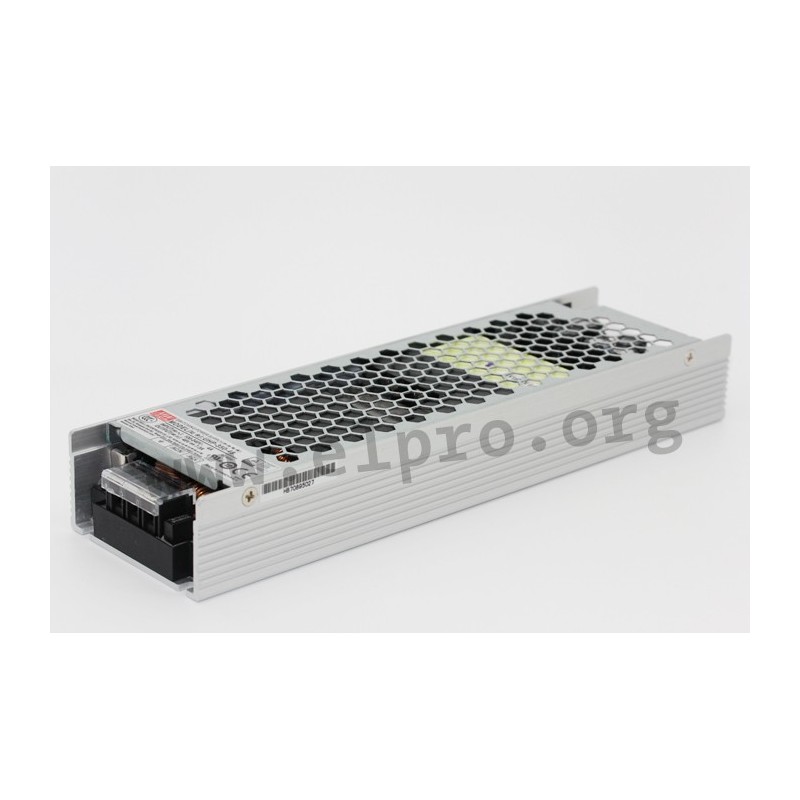 Switching power supplies in an enclosed case (U-bracket) with 350W and a universal input. These devices have a built-in active PFC function and are protected against overload (autop recovery), overvoltage as well as overtemperature. They comply with EN55032 class B, EN55014, UL62368-1, EN62368-1 as well as EN60335-1 (except for UHP-350-55). We offer the following types of this Mean Well series: UHP-350-3.3, UHP-350-5, UHP-350-12, UHP-350-15, UHP-350-24, UHP-350-36, UHP-350-48 and UHP-350-55.
